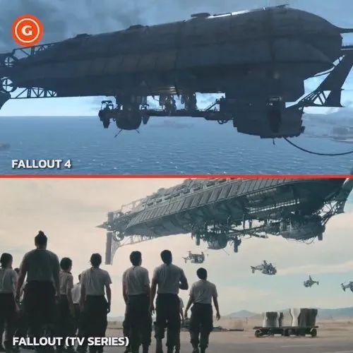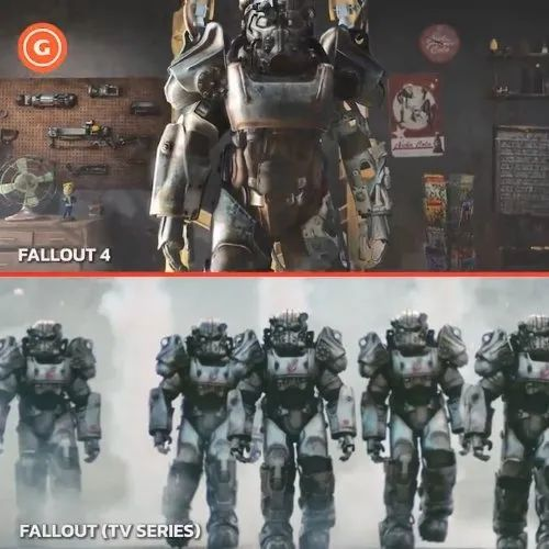 其实早在去年11月,为了突显《辐射》真人剧对游戏的还原,外媒Gamespot就发布过一套对比图。从角色、场景氛围布置以及各种游戏中经典元素,都有了一种近乎复刻版的体验。而亚马逊对服化道方面的考究,也让玩家们对这款游戏改编剧集拥有更多信心。