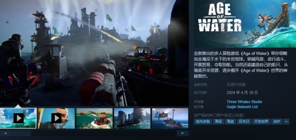 《水之纪元(Age of Water)》是一款全新的多人冒险体验游戏,它展现了一个彻底被水覆盖的末世地球景象。在这片波涛汹涌的世界中,玩家将扬帆远航,勇敢战斗,从事贸易,夺取敌船。游戏还允许玩家打造个性化的船只,深入海底挖掘珍贵资源,逐步探索并揭露《Age of Water》那神秘莫测的世界秘密。