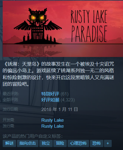 本期小编给大家带来Rusty Lake 周年庆典盛大开启的消息,特别限时优惠活动已于4月20日正式启动,将持续至4月27日。在此期间,玩家们将有机会以超值价格探索 Rusty Lake 系列游戏的神秘世界,享受一场沉浸式解谜冒险的盛宴。接下来我们就一起往下看看吧。