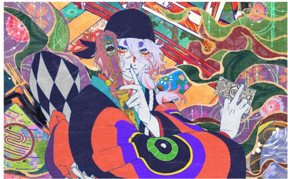 浮世绘是日本江户时代兴起的一种版画艺术,以简洁明快的线条勾勒,鲜艳饱和的色彩着色,描绘世间百态。《怪化猫》在此基础上,融入了西方结构主义、装饰主义、分离派、野兽派等流派的特点。