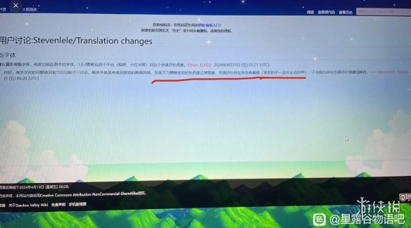 就在新版本的翻译引起争议的时候,有网友发现该翻译组的一位成员此前星露谷Wiki上发表了对原翻译的看法,认为之前的翻译存在“错翻、乱翻、抖机灵”等的情况。