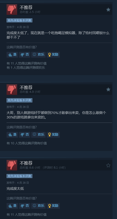 不过,由于游戏尚处于EA阶段,游戏的内容量过少也被不少玩家诟病。