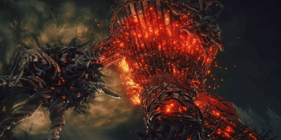可以看到,这个行走的燃烧巨像中似乎有很多烧焦的尸体,从其笼子般的四肢中伸出。这些人痛苦的死相无疑为DLC的新Boss增添了几分惊悚可怖的印象。