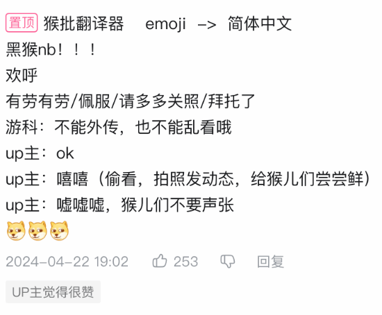 这串表情很快就被网友们破解,她也为这条评论点赞并将其置顶,肯定了这位网友的猜测。
