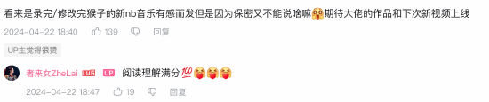 有网友称,看来是录完/修改完猴子的新nb音乐有感而发,但是因为保密又不能说啥。博主回复:阅读理解满分。