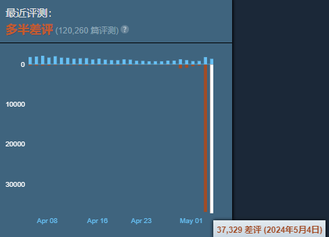 据观察,从公告发出后两天内,游戏新增了74,318条差评,约占发布以来所有评论的19%。知名业内人士Daniel Ahmad都发文表示非常震惊:“说实话,以前从来没有见过这样的事情。”这也意味着游戏自2月8日发售以来,近3个月积攒的好口碑被白白断送,付出得努力也前功尽弃了。