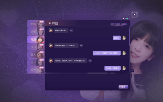 玩家在通过第一章剧情后,即可从主界面右下角“悄悄话”按钮进入女友聊天功能。在看过的剧情中已出场的角色,会出现在“悄悄话”的聊天列表里,玩家可以选择心仪的角色和她自由对话聊天。