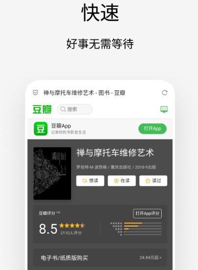 简洁易用的浏览器,几百万用户都已下载,页面内容极其精简,没有搜索框,更没有任何广告植入,对于极简主义者非常适合无论。该软件小巧轻快,很节省流量,保存网页之后可以离线查看这一个功能是其他应用完全不存在的。有强劲的广告拦截模式,这样各种牛皮癣广告可以完全去除,没有听歌识曲功能。