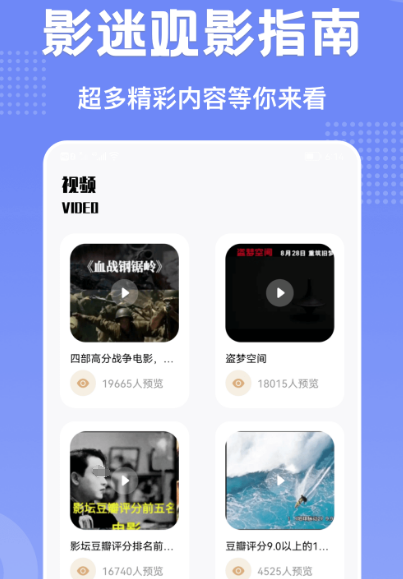 视频种类繁多,支持手机平板等多种安卓系统无广告不收费,高清欧美大片想看就看,院线内容随时更新,多种主题让你休闲,时光不再无聊。