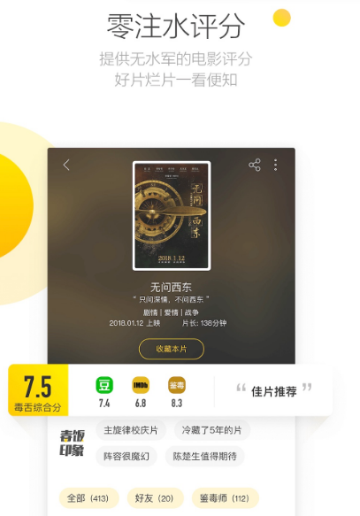 华人影迷必备app这里有超过500位知名影评人,每部电影的真实情况都能实时展示。还有新鲜热门资讯明星专访,第一时间了解直击当下热点。
