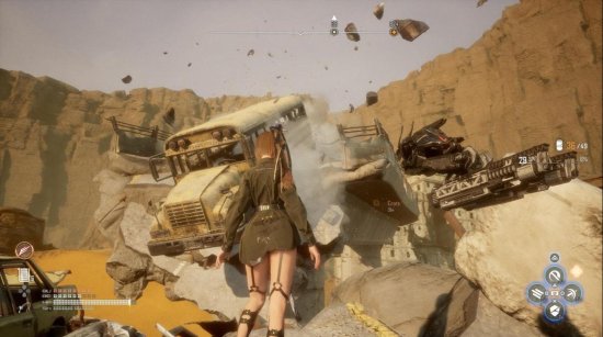 -沿着高速公路向北前进。最终会看到一个可以攀爬的斜坡路段。继续沿着这条路走,直到发现一辆公交车。射击炸药桶使其掉落,穿越缺口