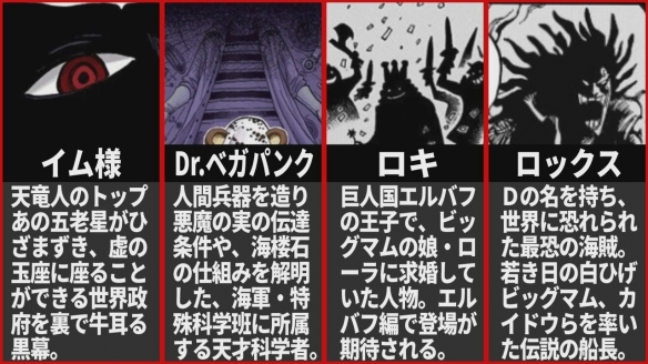 第90卷重登场的神秘角色,世界ZF幕后主宰,动漫中称作世界之王、世界ZF总统。立于世界ZF最高权力者五老星之上的神秘人物,“空的王座”的主人。居住于圣地玛丽乔亚盘古城最深处的花之间。伊姆被五老星称作“造世主”,其存在不为外界所知。
