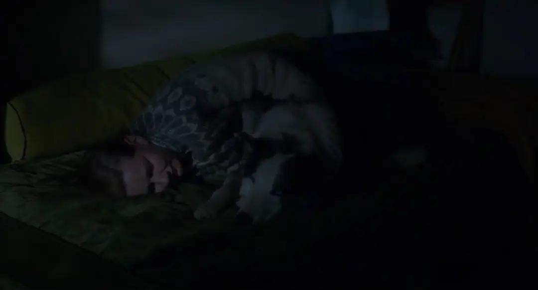 而赢得官司的Sandra,却在黑暗中将儿子的导盲犬拥入怀中,安然入睡,而那在整部剧中一直是丈夫鬼魂的替代品——那只导盲犬也安然的躺在了Sandra的身边。
