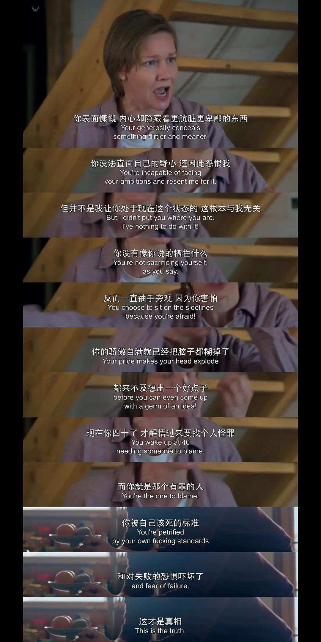 当Samuel又一次指责Sandra只顾自己,不顾她的出轨行为给他与儿子Daniel带来的伤害时,Sandra彻底爆发,开始向丈夫猛烈开火。一串串话语如炮弹般射向丈夫,诅咒丈夫目前的一切困境都是他自己造成的,要怪就怪自己,怪自己放不下自尊,怪自己对失败的恐惧,怪自己一事无成。
