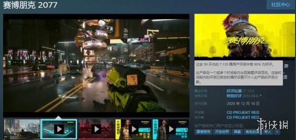《赛博朋克2077》在Steam上总共获得65万多条评论,好评率83%为“特别好评”。然而在近30天内其评价更好,新增7133条评论,好评率95%为“好评如潮”。这是《赛博朋克2077》首次在Steam上获得压倒性的好评率,对CDPR的开发者来说,是一个巨大的里程碑。