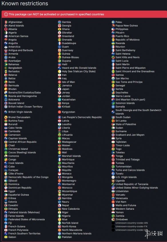 以下是《对马岛之魂》PC版下架的国家名单(来自Steam数据库的信息):