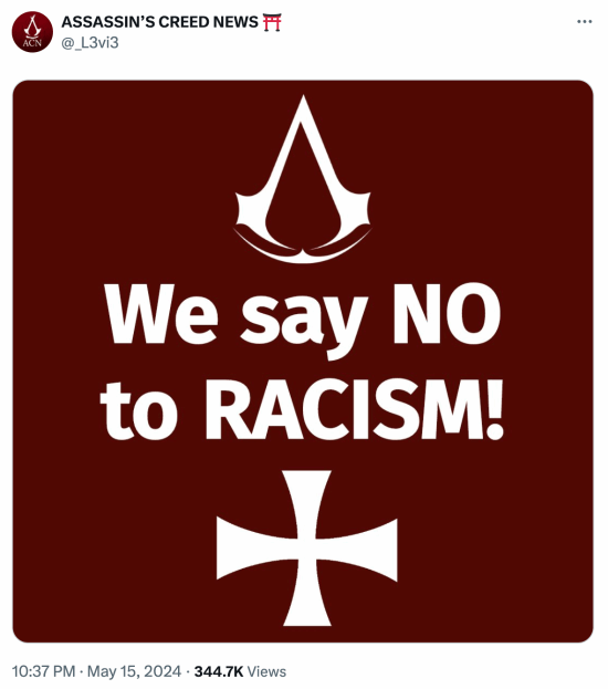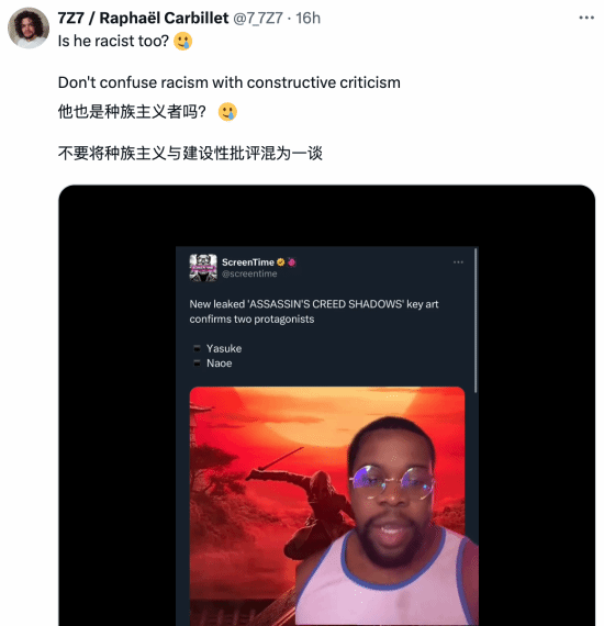 但是,也有人持完全相反的看法,专注于《刺客信条》资讯的博主ASSASSIN’S CREED NEWS发贴抵制种族歧视:对种族歧视说不,让我们一起来看看网友们对此是怎么说的吧。