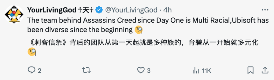 有网友表示,《刺客信条》开发团队从一开始就是多种族的,育碧从一开始就多元化。