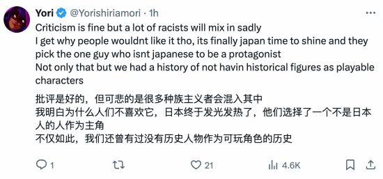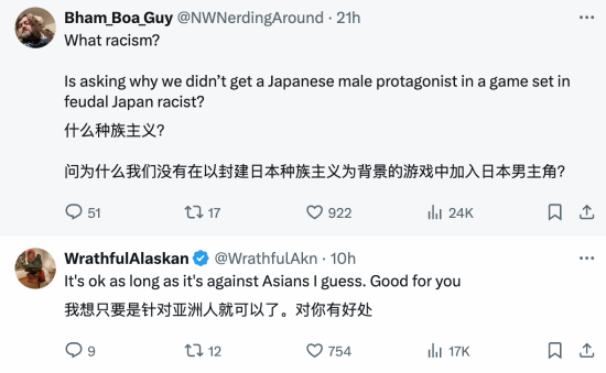 也有网友称,重点不是种族歧视,而是以封建日本种族主义为背景的游戏竟然不是日本男主角。不能将种族主义和建设性批评混为一谈。