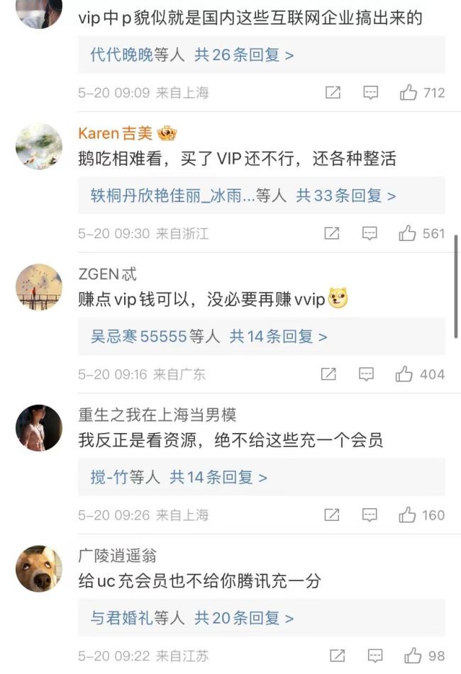 “买了VIP还是有很多广告,就连VIP用户都要再补个SVIP才能多看一集”“五步一广告,十步一堆广告”“看着就让人不耐烦,全程快进”……不少网友边看边吐槽。