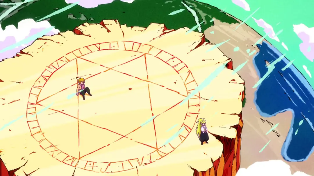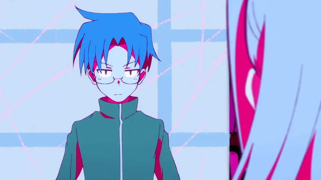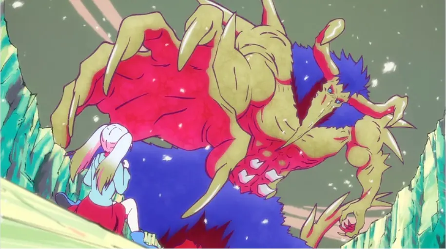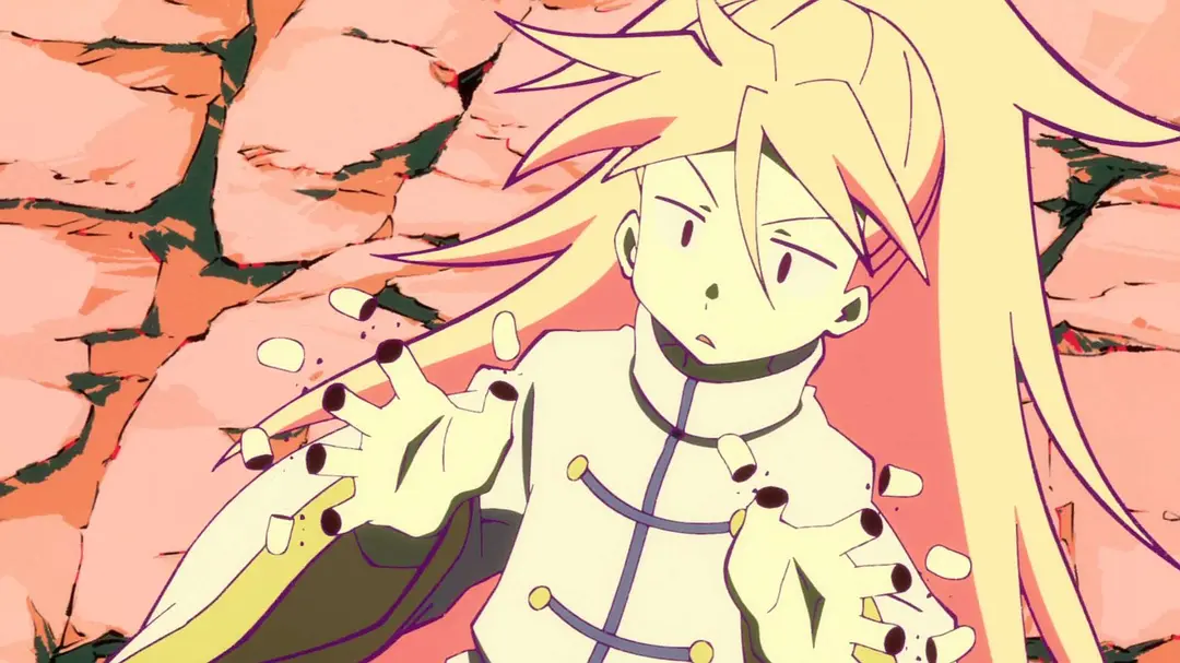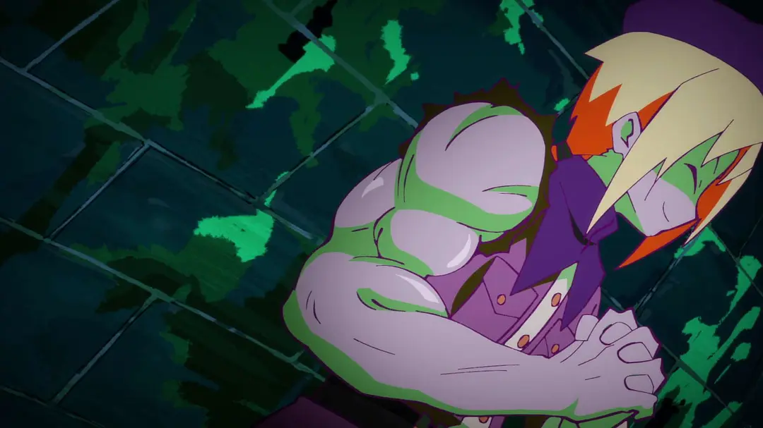 在色彩设计方面,场景的颜色选择也对人物的配色产生了微妙的影响。以隼人为例,在常态下,他的头发和外套通常呈现出鲜明的黄色和橙色。然而,当置身于已经充满强烈色彩冲突的环境中时,为了避免人物显得过于突兀,色彩设计师巧妙地为隼人选用了与场景中的绿色、粉色更加和谐的浅蓝色和灰绿色。