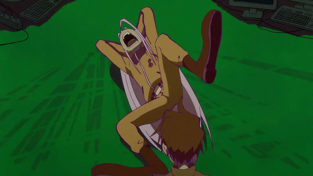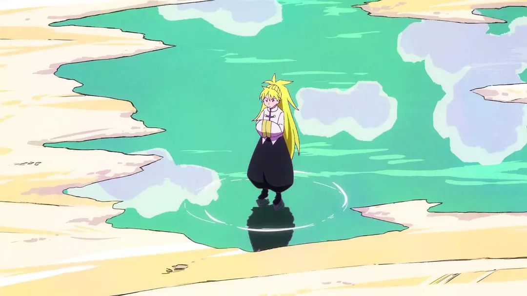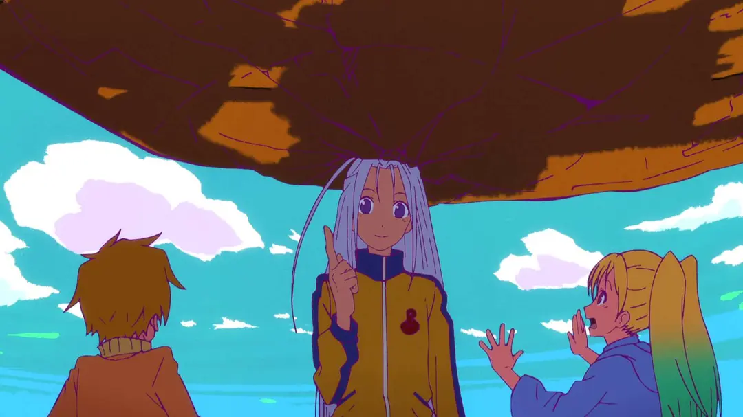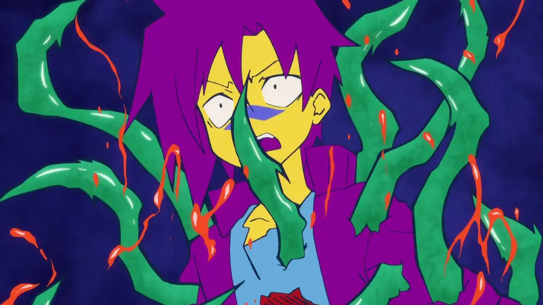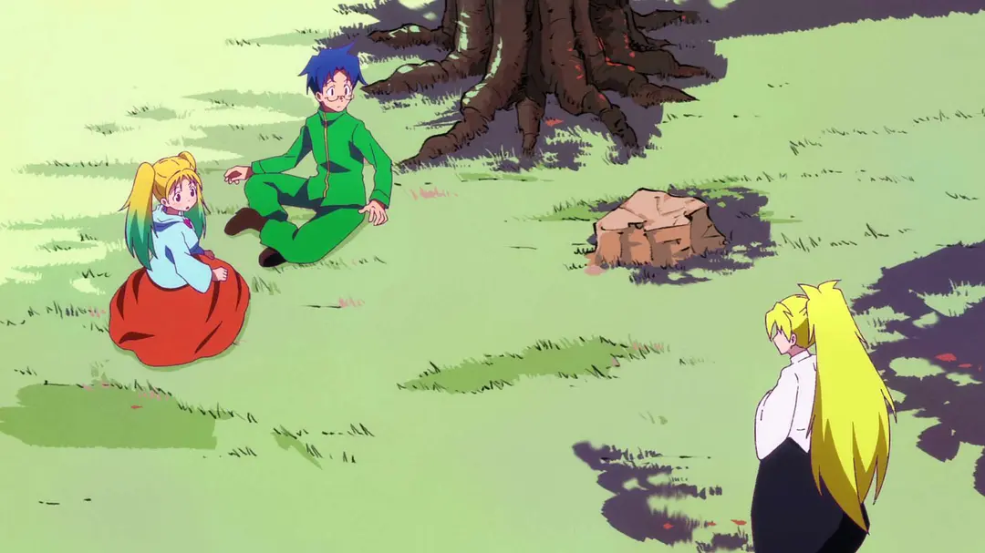 在这部作品中,色彩设计可谓是将"反差"这一概念发挥到了极致。为了与原作简洁(有时甚至可以说是潦草)的人物形象设计相呼应,动画师们大胆地选择了类似无影动画的赛璐璐/平涂风格进行上色。