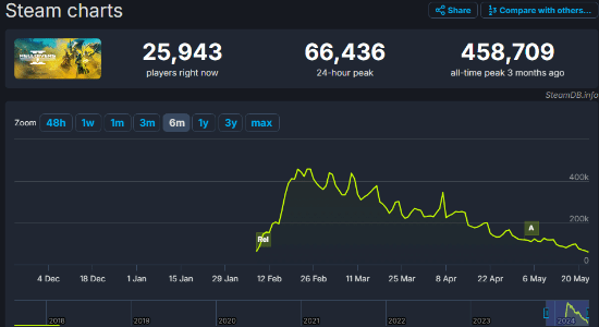据相关消息,游戏《地狱潜者2》已于2月8日正式发售,并在发售后爆火,并在发售后3个月便创下1200万份销量的出色成绩,并迅速形成了一个非常活跃的游戏社区,但是,随着时间的推移再加上一些外部因素,让这款游戏的当下热度处于发售以来的最低水平,据相关数据,该游戏AI本周的Steam平台热度为日均6-7万人,而在10天之前游戏基本能保持在10万 的热度。