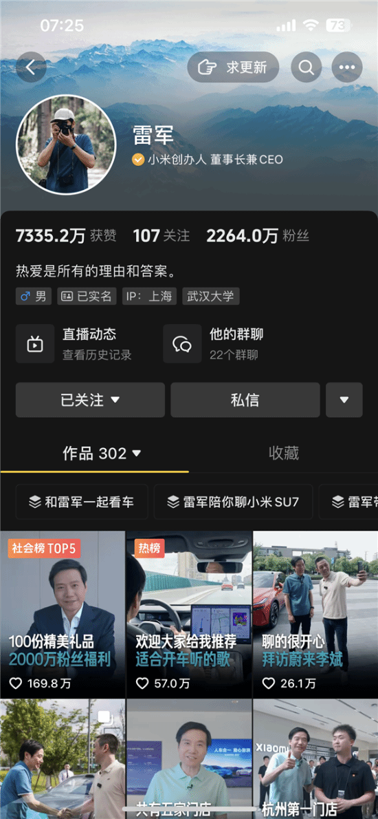 以上,便是小编收集到的有关雷军抖音粉丝破2000万宠粉的全部内容,感兴趣的朋友们可以关注一下,那么,让我们下期再见。