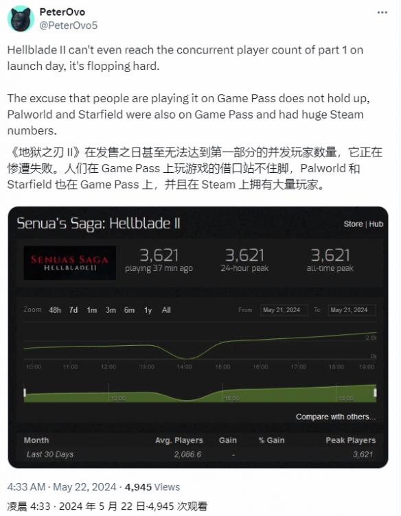 他表示,玩家在Game Pass玩的理由站不住脚,《幻兽帕鲁》和《星空》也首发XGP,但Steam仍然有大量玩家。