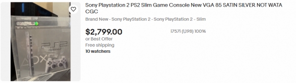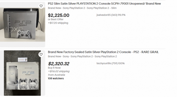 目前在eBay中可以看到,类似的全新银色PS2主机的价值大概在1000美元至2000美元之间,有个别卖家甚至卖出了近2800美元的高价。