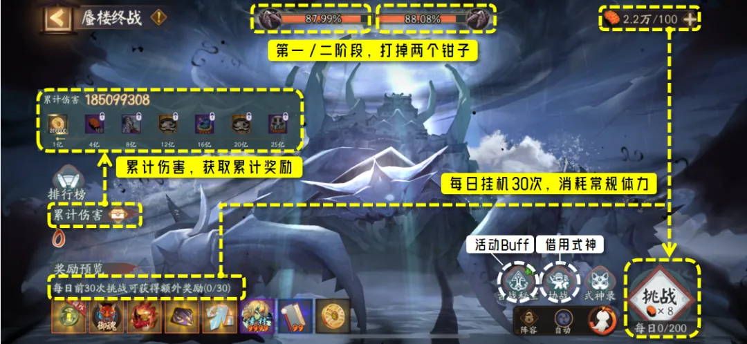 ■ 挑战消耗常规体力,8体/次,2min/局,5000万伤害保底4w左右积分