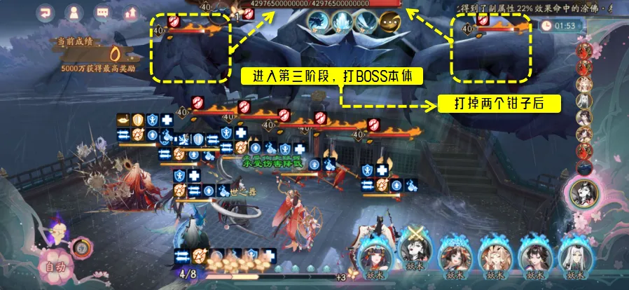 活动TIP:配好阵容每天挂30次单次伤害>5000万即可拿满活动积分,多打不多得一阶段和二阶段本质上没有区别,不冲榜可以不换阵容三阶段BOSS速度很快,土蜘蛛效果没有荒骷髅好