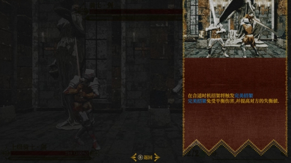 招架,就应该是打铁爱好者比较熟悉的了,敌人狠狠地打,咱们狠狠地招架,如果招架成功,就会增加血槽下方的“失衡”值,这个值攒满后一旦再完成招架,就会进入懵圈的大破绽状态,站在原地吃一招狠的。