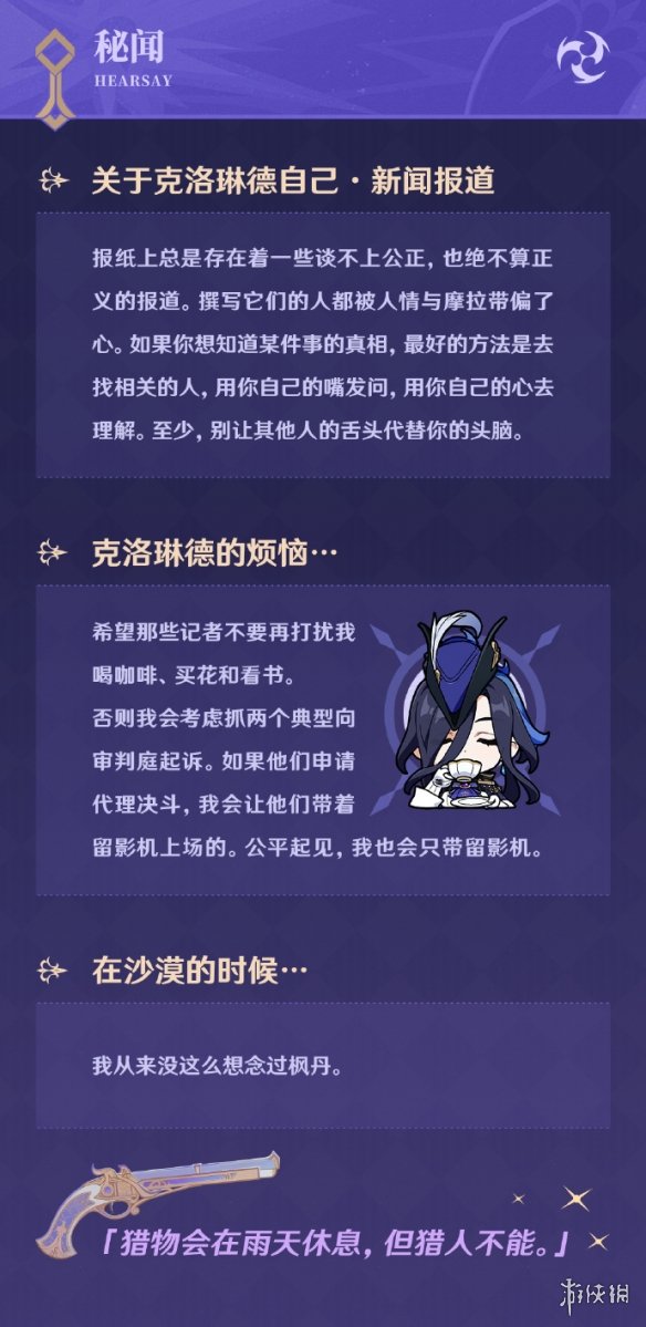 本期小编根大家聊聊关于《原神》官方今天(5月30日)公开了4.7版本新角色“克洛琳德”的角色PV,以及角色介绍的消息,新版本将于6月5日上线。接下来我们就一起往下看看吧。