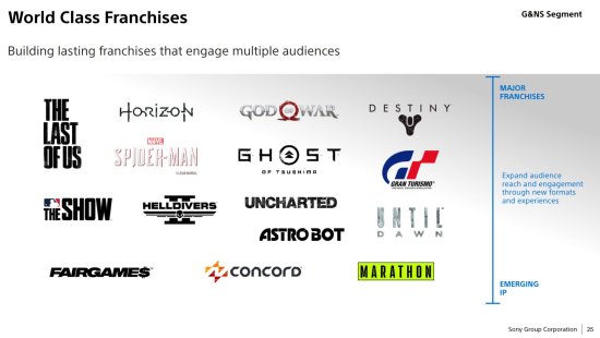 据了解,索尼于此前举办了业务部门会议,该会议的演示文稿也于近期被公开,稿中展示了索尼对旗下游戏工作室业务领域的划分以及其IP所扮演的角色,具体到IP,索尼也分出了多个层级:《战神》这样的看家大作;《地狱潜者2》这样的负责扩圈和拉新的作品,还有《马拉松》这种新兴IP。
