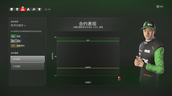 生涯模式的另一个革新就是映入了体育游戏玩家熟悉的 ——“评分系统”。这项功能通过评估车手的各种属性,例如驾驶技巧、反应速度等,来衡量他们在比赛中的表现。玩家在每个周末的表现也会反过来影响我们的评分,更快的圈速,更少的犯规和处罚等都会使我们成为更好的车手,离自己的冠军目标更进一步。然而,值得注意的是,这些评分并不能像NBA 2K或者FIFA系列一样直接影响到选手在比赛中的表现,而是以某种方式影响着他们与车队签约的成功率,以及获得与赛车开发相关的额外资源。换句话说,这样的设计可能在一定程度上减少了游戏的挑战性和乐趣,而更多的是偏向于模拟现实中的商业运作模式。