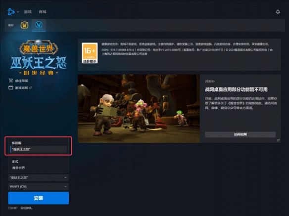 10 左下角游戏版本选择怀旧服【巫妖王之怒】