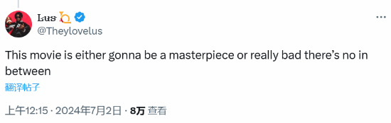 一位影迷在社交媒体上发帖表示:“这部电影要么是杰作,要么就会很糟糕,没有中间项。”