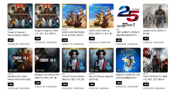据相关消息,港服PS官方于近日开启了“必备精选优惠”活动,本次活动持续至7月17日,在活动期间,超1500款游戏享有折扣,最高优惠幅度可达3折,《龙之信条2》《FF16》迎来新史低,除此之外还有《GT7》《生化8》等多款大作也迎来了促销,让我们一起来了解一下本次有那些游戏参与促销吧。