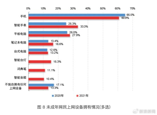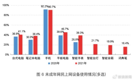 对很多00后10后来说,让他们接触到电子世界的,其实是手机、平板等移动设备,而不是电脑。《2021年全国未成年人互联网使用情况研究报告》里指出,未成年网民使用的上网设备里,有90%是手机上网。台式电脑/笔记电脑均只占据40%左右。