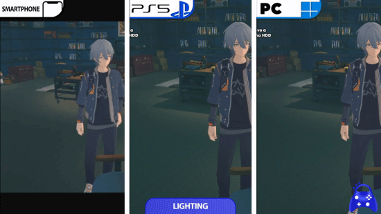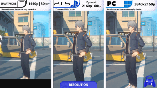 测试手机型号为Oppo Find X5 Pro(高通骁龙8 Gen1处理器),画面全部为最高设置,分辨率2k,帧数锁定为30fps。PS5只有动态4K、60fps一种画面模式。PC平台使用RTX 4080 Super显卡,画质都为最高。