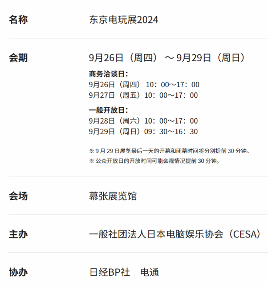 以上,便是小编收集到的有关2024东京电玩展公布参展名单的全部内容,对本次活动感兴趣的朋友们可以关注一下,那么,让我们下期再见。
