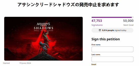 据了解,育碧旗下《刺客信条》系列新作《刺客信条:影》将于2024年11月15日发售,而因为该游戏中的主角之一为黑人武士弥助,并且在官方公开的视频资料中,游戏还有大量内容和史实不符,有日本玩家在请愿网站change.org上发起了一项请愿活动,要求育碧取消发布《刺客信条:影》。