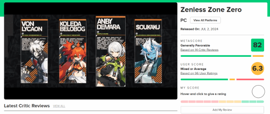 据相关消息,米哈游旗下自研游戏《绝区零》已于近日正式公测,而该游戏在继昨日媒体口碑解禁,M站媒体均分为79分后,而《绝区零》在该平台的评分现已涨至82分,玩家评分也一并出炉,为6.3分,好评率为56%,中评率为7%,差评率为34%,让我们一起来看看玩家们是怎么评价这款游戏的吧。