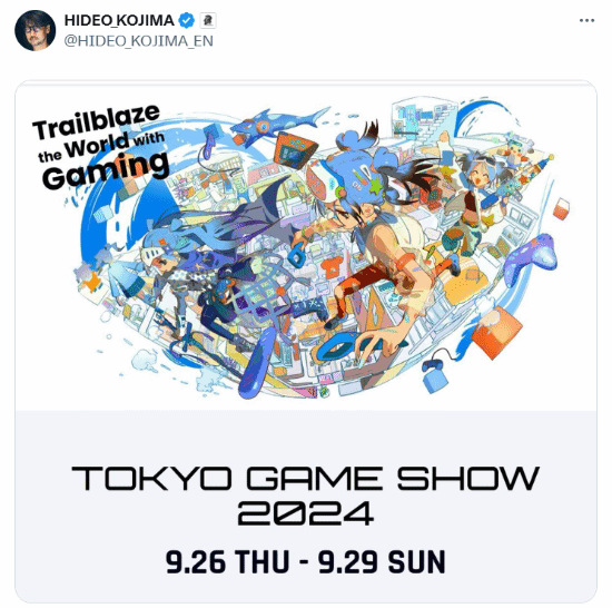 据了解,2024年东京电玩展(TGS)将于于9月26日正式举行,在本次活动中,索尼、卡普空、万代南梦宫、世嘉、SNK、Square Enix等众多知名厂商将会参展,而据相关消息,小岛秀夫也于近日转发了本届TGS的主视觉图,且参展名单也有小岛工作室的名字。