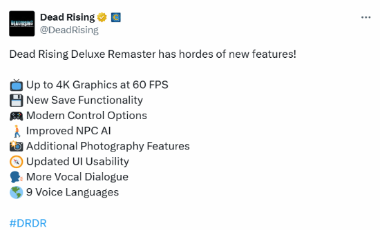 据相关消息,卡普空官方已于近日官宣了《丧尸围城 豪华复刻版》的存在,而在这款游戏中,男主弗兰克·韦斯特再次回归,随后PC版游戏的价格也一并被揭露,Steam国区标准版的售价为248元,豪华版为298元,而在近日,官方再次公布了游戏的一些新特性,让我们一起来了解一下吧。