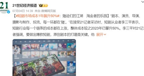 以上,便是小编收集到的有关短剧市场成本1年飙升50%的全部内容,那么,让我们下期再见。