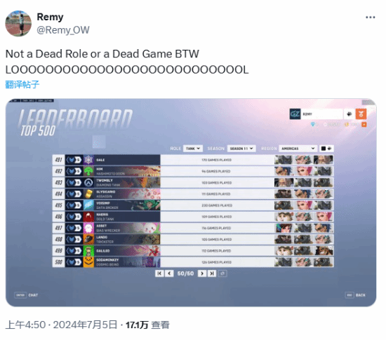 以上,便是小编收集到的有关《OW2》前500排名竟包括钻石段位玩家的全部内容,感兴趣的朋友们可以关注一下,那么,让我们下期再见。