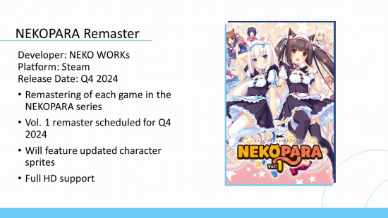 据了解,人气Galgame系列《猫娘乐园(nekopara)》是由NEKO WORKs制作的恋爱冒险游戏,而该游戏的官方于近期宣布,将对历代作品进行高清复刻化,同时还会更新角色立绘,而Vol.1高清复刻版预计于今年第四季度在Steam上发售,让我们一起来了解一下吧。
