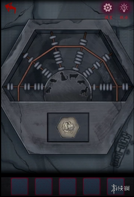 进入后在桌上获得【青铜铲】,打开左边的柜子会被吓一下,然后得到照片和残页,在地上使用铲子撬开地板得到【铜环】,装到牛鼻子上得到【铜印】 在右边的抽屉上使用,打开机关,机关上每个颜色对应一个符号,将机关调整到下图位置获得【龙纹盘】,放到之前的圆形槽位中,旋转【左上左下右】,得到【油纸伞】,将伞放到暗门房间小人的手上打开,结合残页的线索,给地上的门装上把手,调整到下图的样子打开通道。